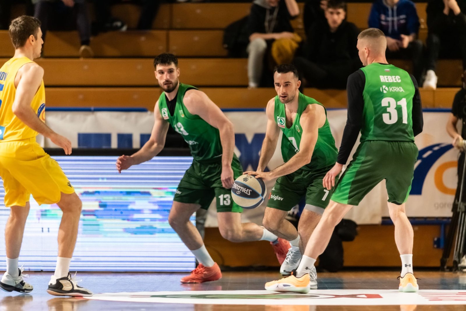 Krkaši so z v petorki Niko Bačvić, Jan Rebec, Urban Oman, Lovro Urbiha in Krišs Helmanis odlično začeli, saj so po dobrih treh minutah povedli z 10-2. Gostitelji so se v zadnji minuti prve četrtine približali na tri točke zaostanka (20-17), a so Krkaši po prvi četrtini imeli sedem točk prednosti (26-19). Krkaši so prvič prišli do dvomestne prednosti v 15. minuti, ko je bilo 37-27. Z devetimi zaporednimi točkami so prišli do vodstva z 49-30, ob polčasu pa je bilo 49-35.